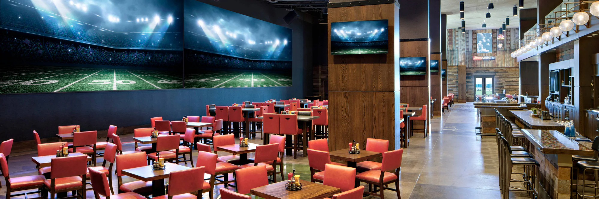 Interactive simulators offer a variety of golf and other games for every sports fan. Play 18 holes of golf or practice on the range, strike out a batter with a fastball, score a game winning touchdown, or kick the soccer ball past the All-Star keeper. It’s all that and more when you step up to the big screen.