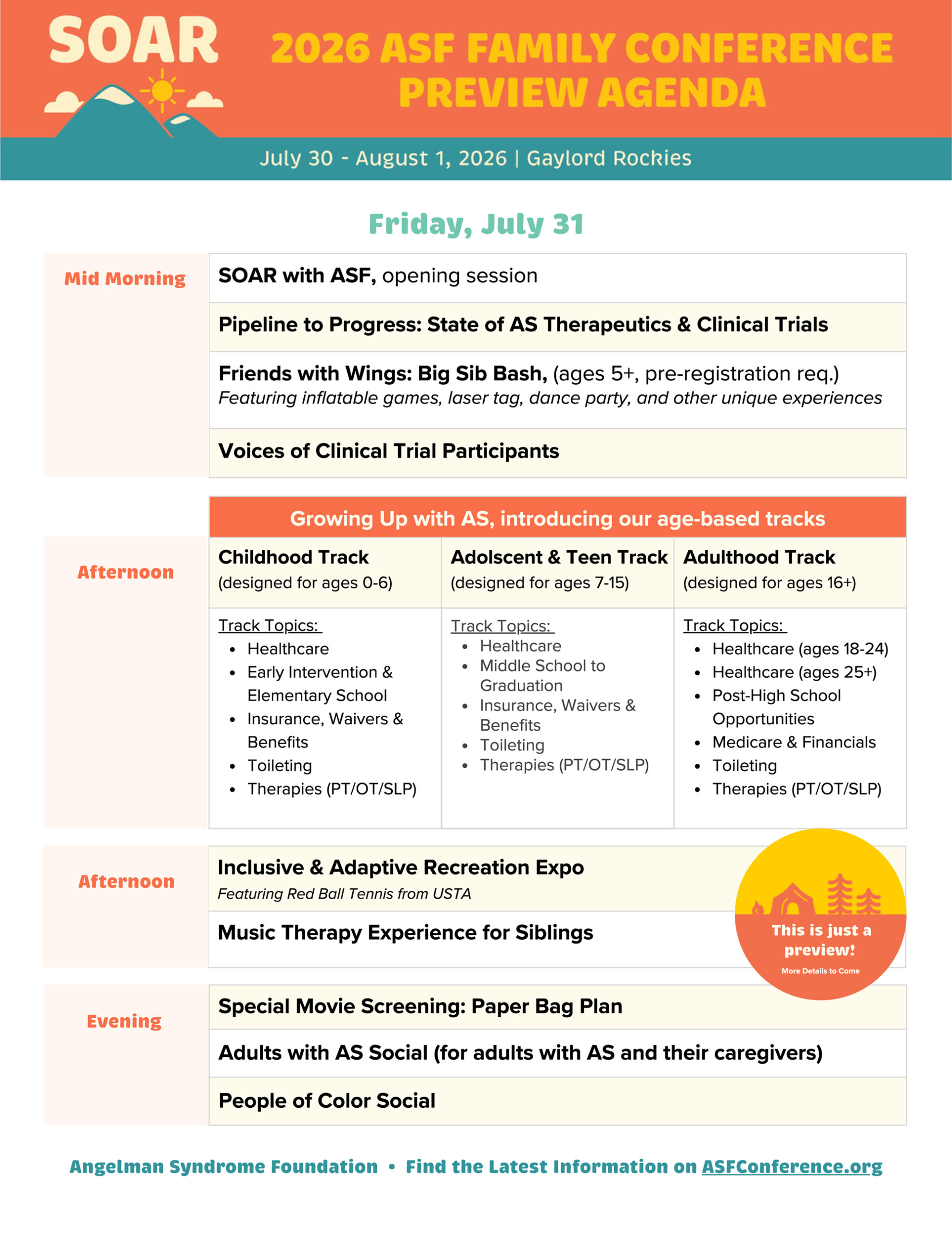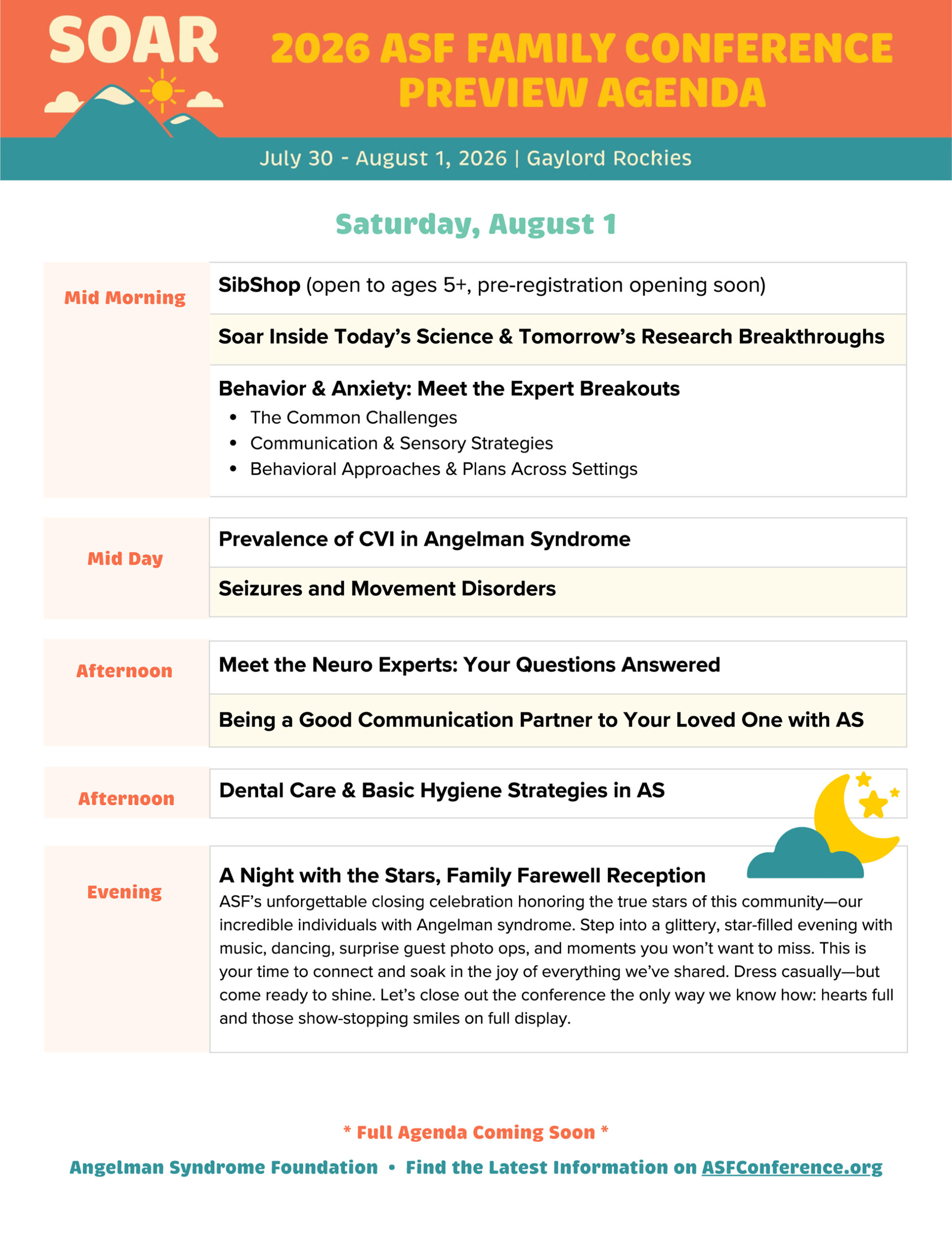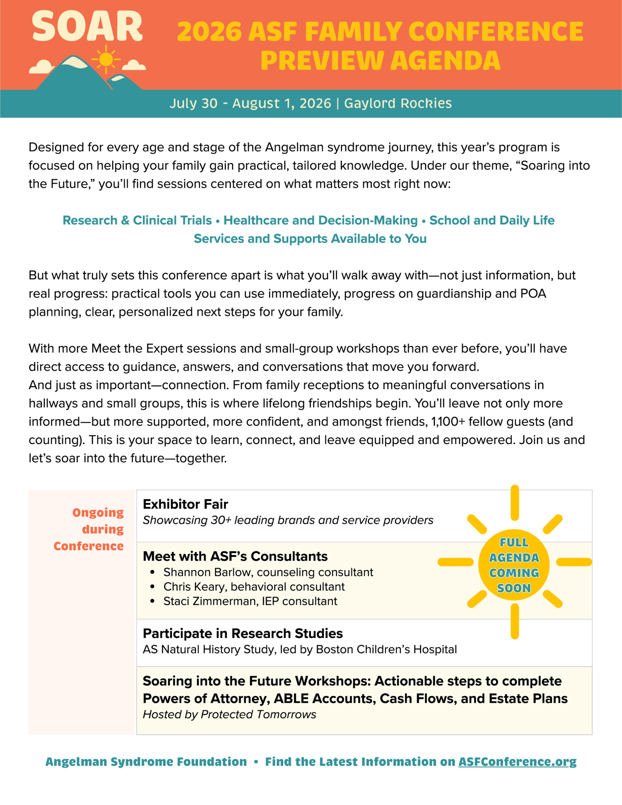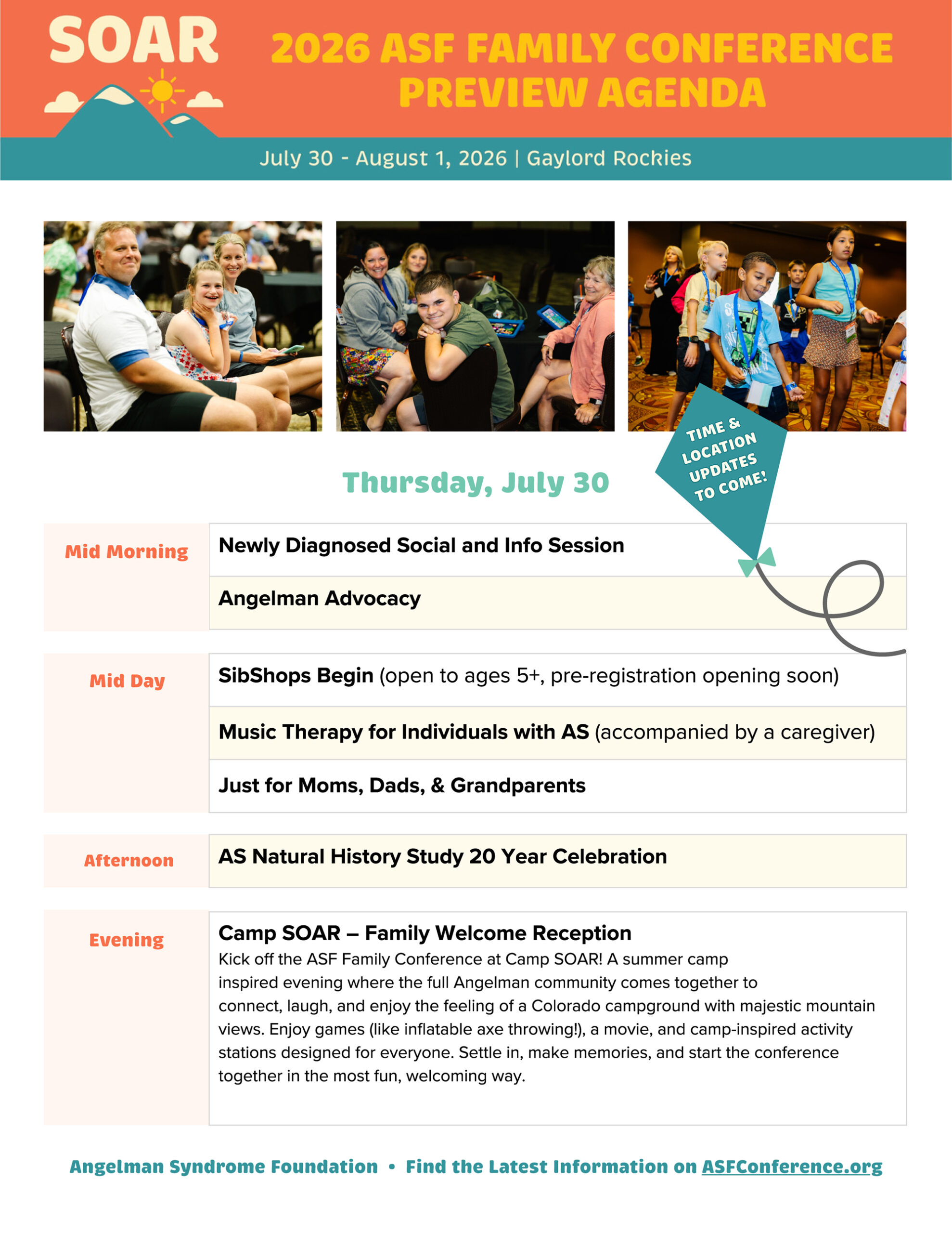 If you are newly diagnosed and just now finding out about the ASF Family Conference, please email events@angelman.org.